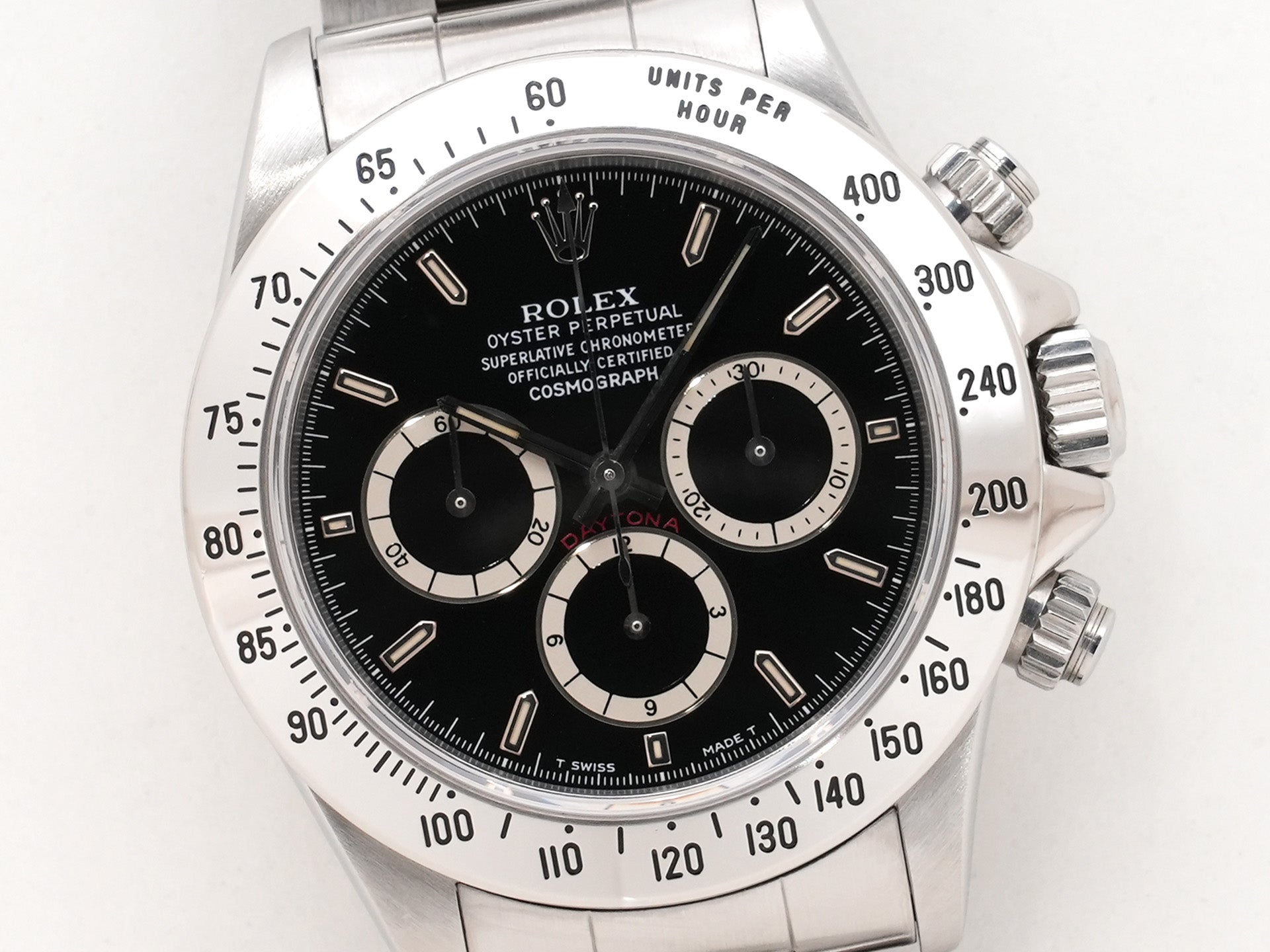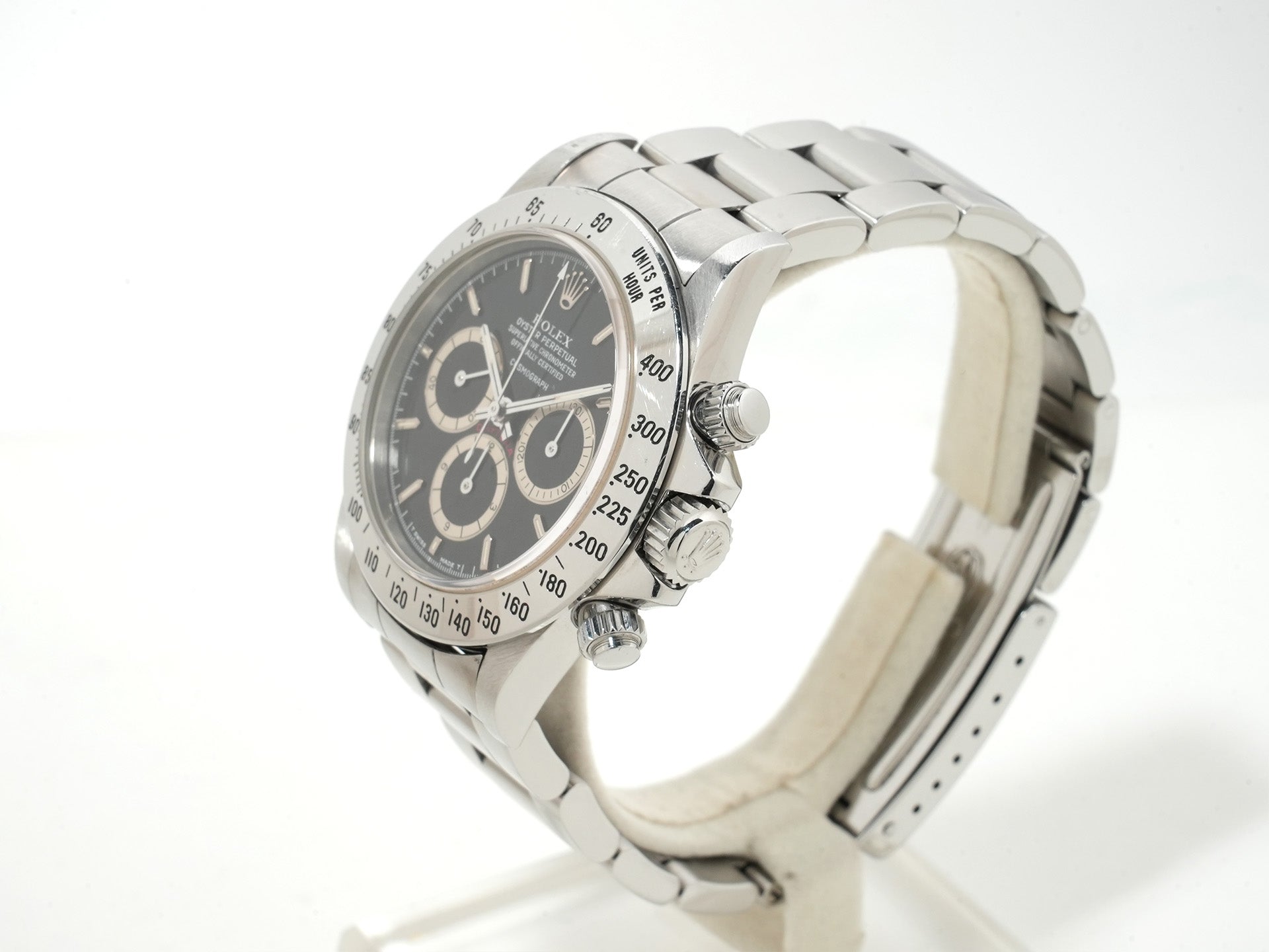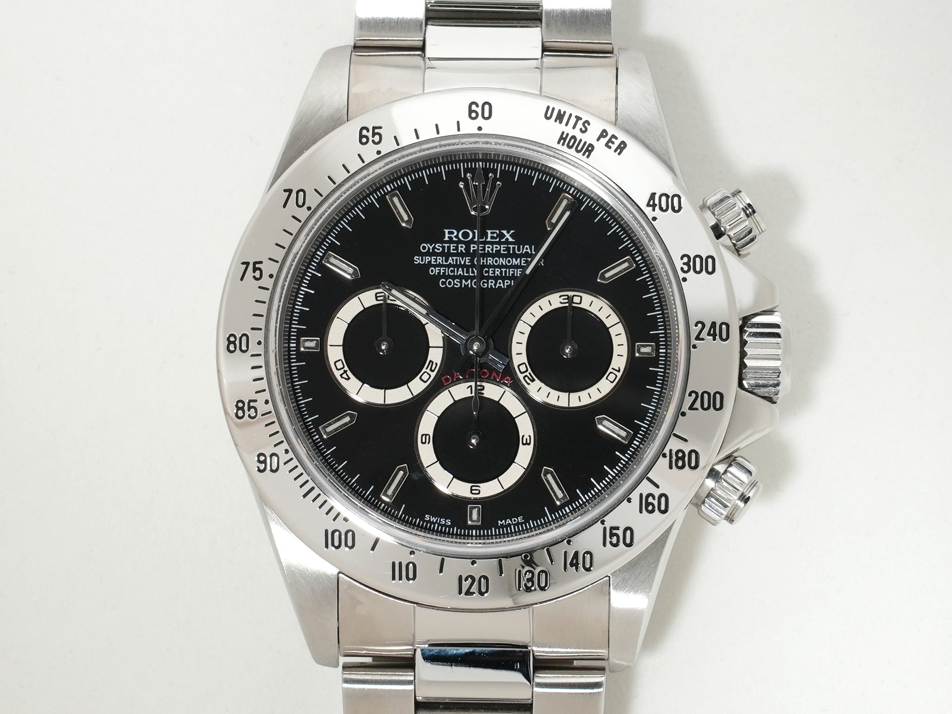 ゼニス社の高性能ムーブメント"エルプリメロ"をベースに製造された「Cal.4030」搭載の本機。『デイトナ』初となる自動巻きクロノグラフを搭載して、1988年に市場へと投入された印象的なモデルであります。40mmケース、ステンレスベゼル、そして美しくレイアウトされた3カウンターのインダイヤルと、そのすべてが絶妙なバランスによって唯一無二の雰囲気を醸し出しています。製造終了から20年以上が経過した今なお、その希少性と歴史的背景から価格は高騰し続け、世界中のコレクターが追い求める存在となっています。