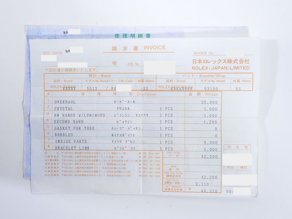 | 付属品 | Warranty card; Pass case; Calendar; Tag; Chronometer tag; Repair statement |