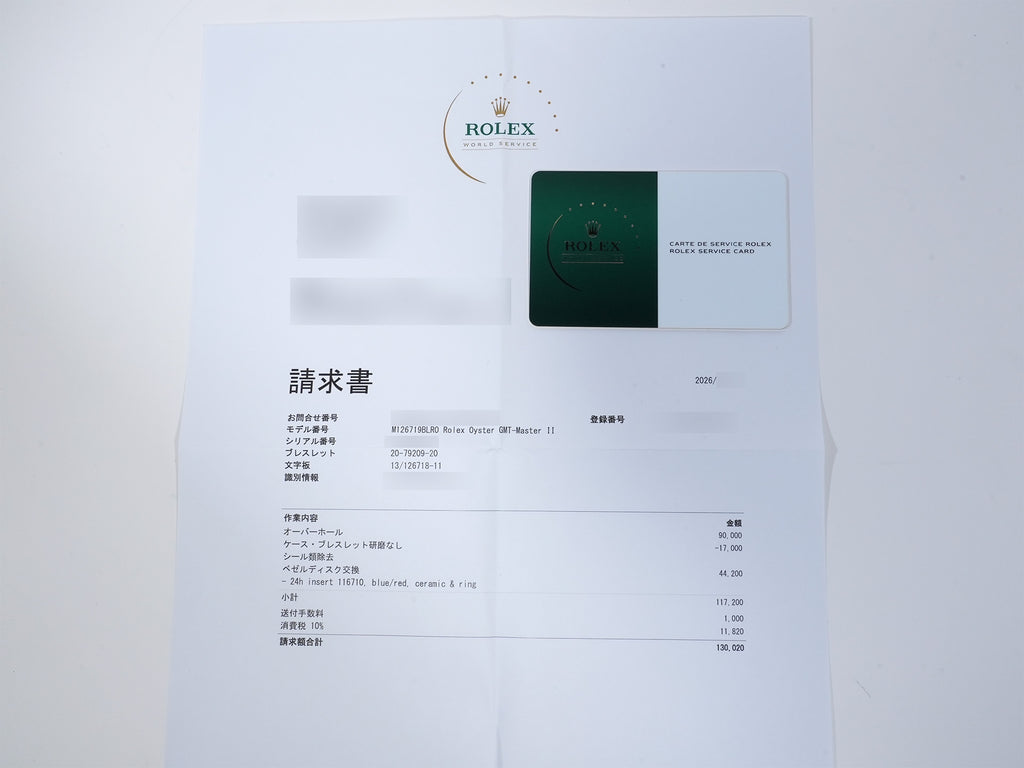 | 付属品 | Warranty; International Service Warranty; Box; Booklet; Pass Case; Chronometer Tag; Extra Links; Invoice |
