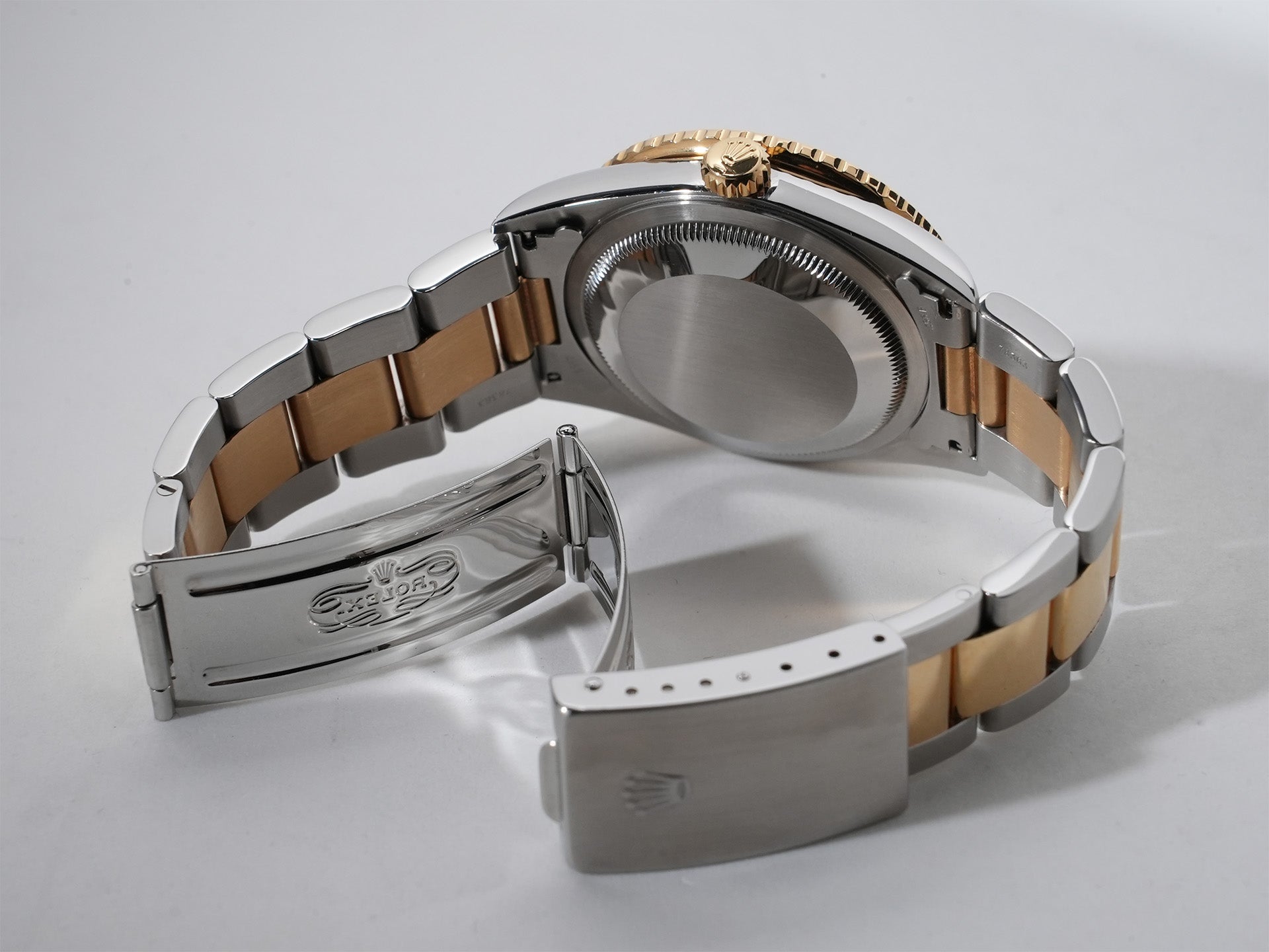 ■概要 1970年代後半から1980年代後半にかけて製造されたロレックス デイトジャスト Ref.16018。本モデルにはハイビート化されたムーブメント「Cal.3035」が搭載されており、日付のクイックチェンジ機能を備えるほか、風防には耐傷性に優れたサファイアクリスタルが採用されています。最大の特徴は、通称「タイガーアイ」と呼ばれる、金褐色の細かな縞模様を持つ美しいダイヤル。この模様は、まるで虎の目の虹彩を思わせるような独特の輝きを放ち、光の当たり方によって多彩な表情を見せてくれる、まさに唯一無二の存在感を誇る一本です。現在では市場での流通も非常に少なく、大変希少なモデルとなっています。さらに、本個体は付属品も揃っており、ダイヤル・ケース・ブレスレットいずれも極めて良好な状態を保つ、まさにパーフェクトコンディションの優良個体です。