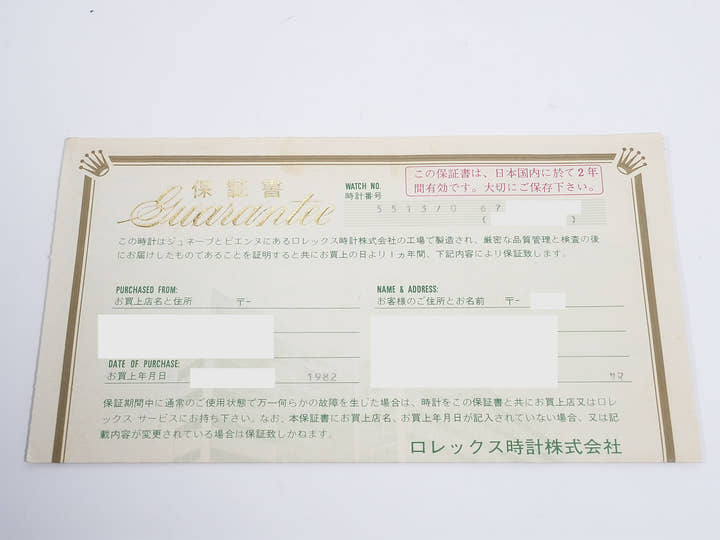 | 保証書日付 | 1982年08月 |