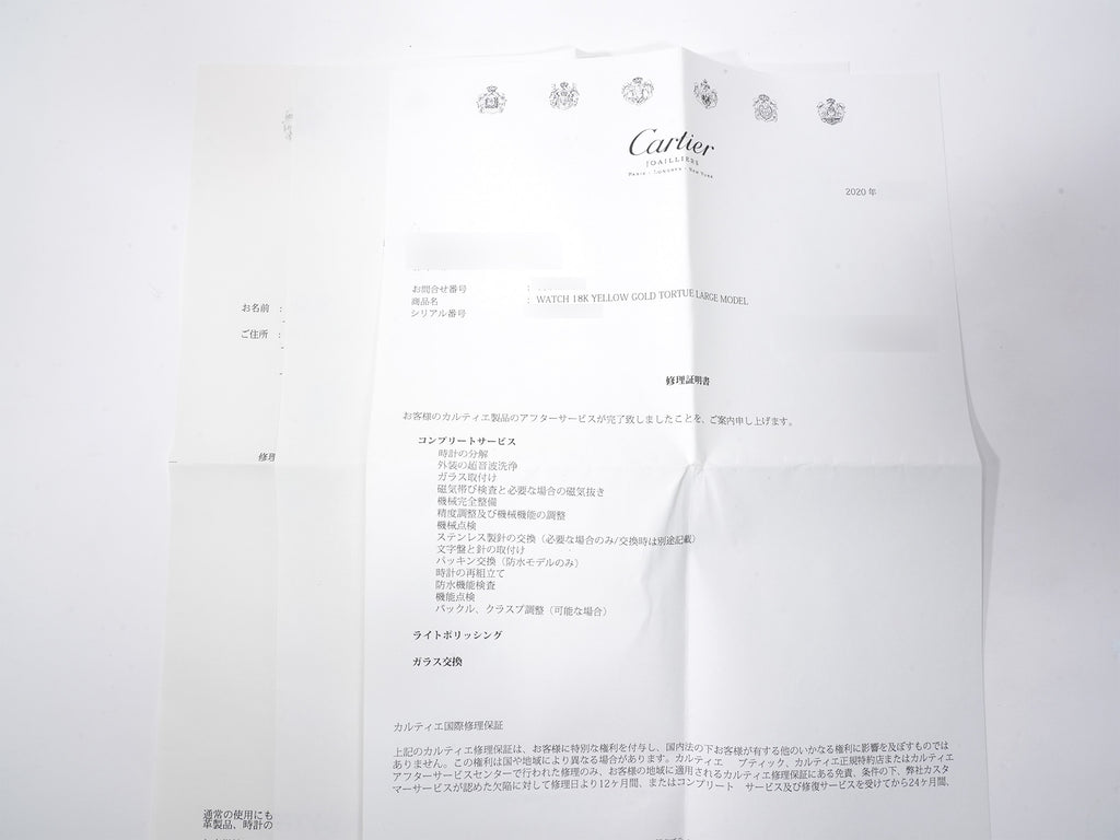 | 付属品 | 保証書;修理明細書;革ベルト;ウォッチケース;納品書;請求書 |