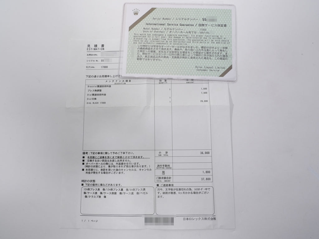 | 付属品 | 保証書;国際サービス保証書;箱;冊子;パスケース;タグ;シリアルタグ;余りコマ;修理見積書;オリジナルダイヤル;針 |