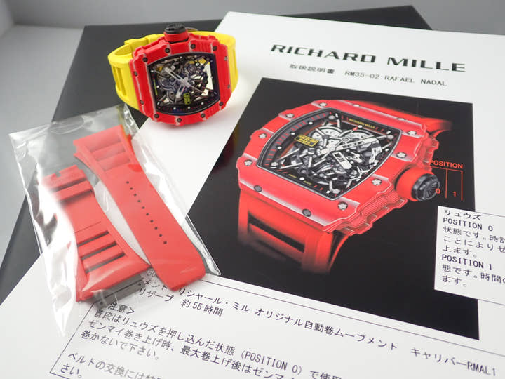| 付属品 | 保証書、箱、取扱説明書、冊子、ワインディング機能付きボックス(動作不良)、純正ラバーベルト(レッド) |