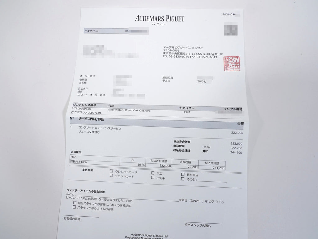| 付属品 | 保証書;箱;冊子;余りコマ;修理明細書;ラバーベルト;アリゲーターベルト;尾錠;修理ボックス;ベルトケース |