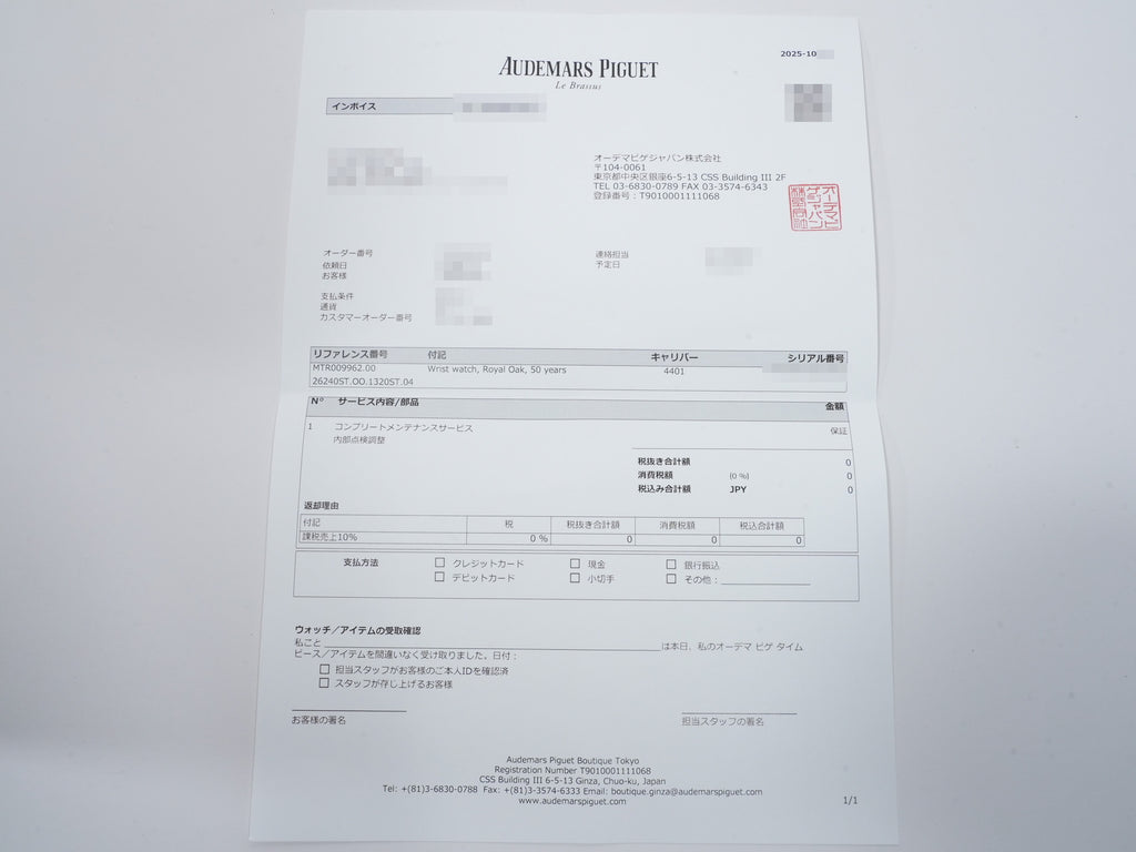 付属品 | 保証書;箱;冊子;余りコマ;クロス;修理明細書;証明書 |